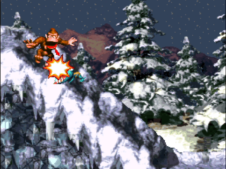 そんな仕様で床が滑る上に足場が狭い雪山のステージとかマジで鬼畜難易度だろ、こんなん。